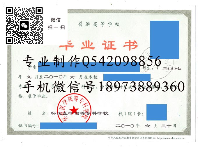 12214怀化医学高等专科学校毕业证样本
