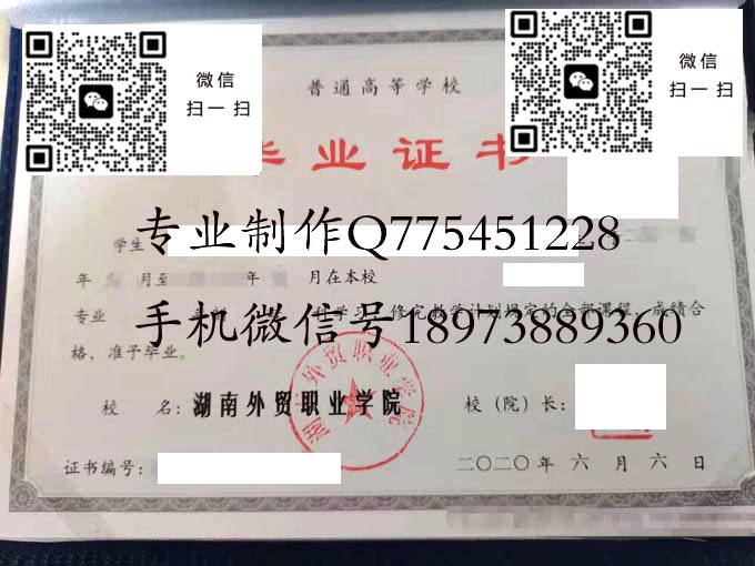 湖南外贸职业学院历年毕业证样本