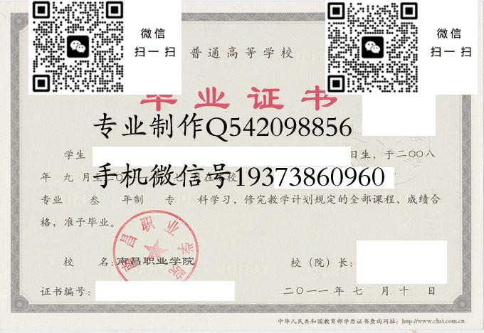 南昌职业大学毕业证编号前五位、学校国际代码:13420。