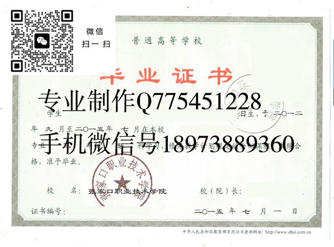张家口职业技术学院本科毕业证样本、张家口职业技术学院研究生毕业证样本、张家口职业技术学院院硕士毕业证样本、张家口职业技术学院大专毕业证样本、张家口职业技术学院自考毕业证样本、张家口职业技术学院院成人毕业证样本、张家口职业技术学院学士学位样本。库存全国普通高等院校:1991年、1992年、1993年、1994年、1995年、1996年、1997年、1998年、1999年、2000年、2001年、2002年、2003年、2004年、2005年、2006年、2007年、2008年、2009年、2010年、2011年、2012年、2013年、2014年、、、等学籍档案、本科、大专、自考、研究生、学士学位、硕士、博士等大学毕业证样本!