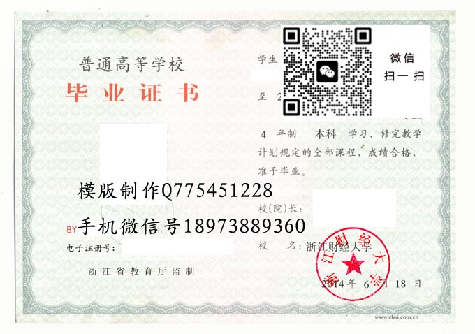 浙江财经大学2014年毕业证样本