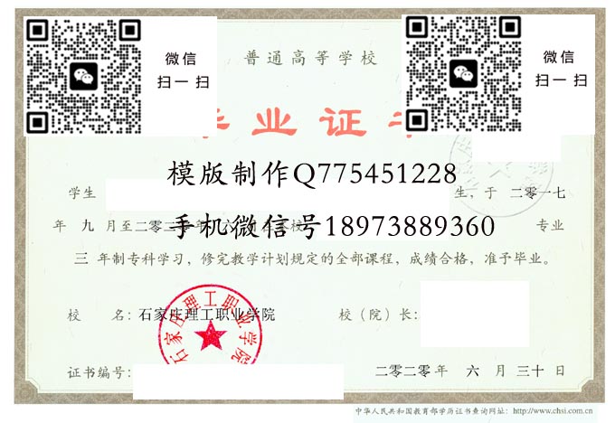 石家庄理工职业学院毕业证样本