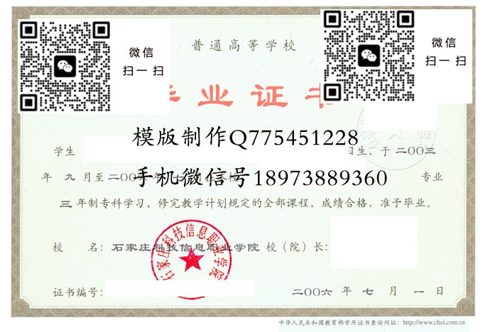 石家庄科技信息职业学院本科毕业证样本、石家庄科技信息职业学院大专毕业证样本、石家庄科技信息职业学院自考毕业证样本、石家庄科技信息职业学院成人毕业证样本、石家庄科技信息职业学院学士学位样本。库存全国普通高等院校:1991年、1992年、1993年、1994年、1995年、1996年、1997年、1998年、1999年、2000年、2001年、2002年、2003年、2004年、2005年、2006年、2007年、2008年、2009年、2010年、2011年、2012年、2013年、2014年学籍档案、本科、大专、自考、研究生、学士学、硕士、博士等大学毕业证样本!