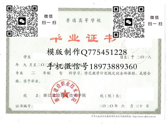 浙江建设职业技术学院2020年毕业证样本:时光印记与青春回响