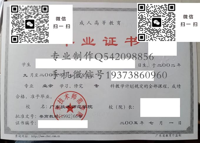 广东技术师范学院的毕业证书分为普通本科与成人自考两种类型,其核心特征与学历属性存在显著差异:
