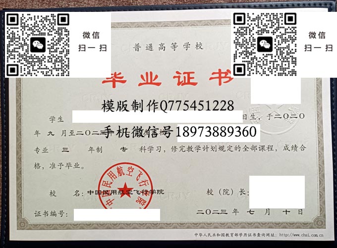 中国民用航空飞行学院毕业证样本