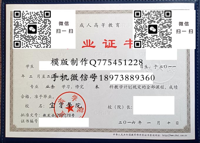 宜宾学院成人毕业证样本