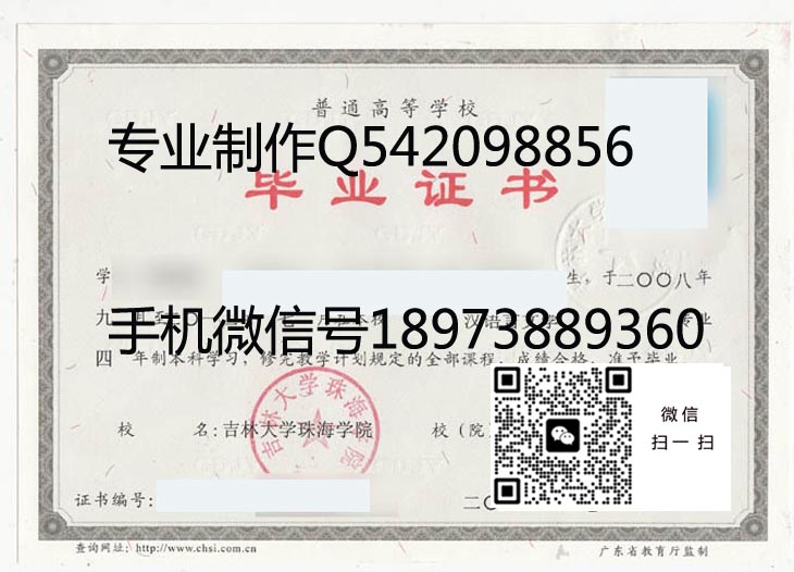 吉林大学珠海学院毕业证样本