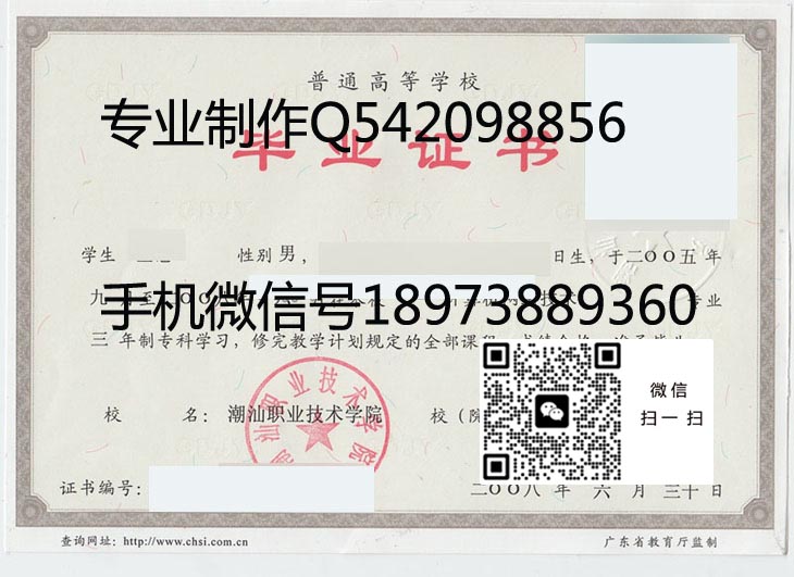 一、潮汕职业技术学院毕业证样本特征